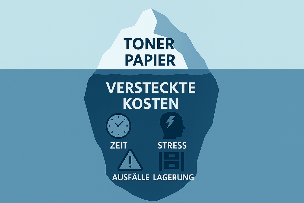 Fragt man Unternehmen, was sie ein Ausdruck intern tatsächlich kostet, herrscht oft Ratlosigkeit. Papier und Toner? Klar. Aber was ist mit der Zeit, die Mitarbeitende für Bedienung, Fehlerbehebung und Koordination aufwenden? Was ist mit den Ausfallzeiten, der Lagerhaltung oder der Entsorgung von Fehldrucken?